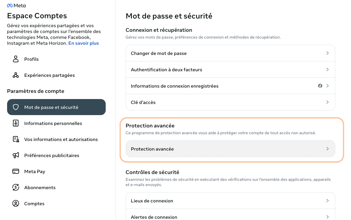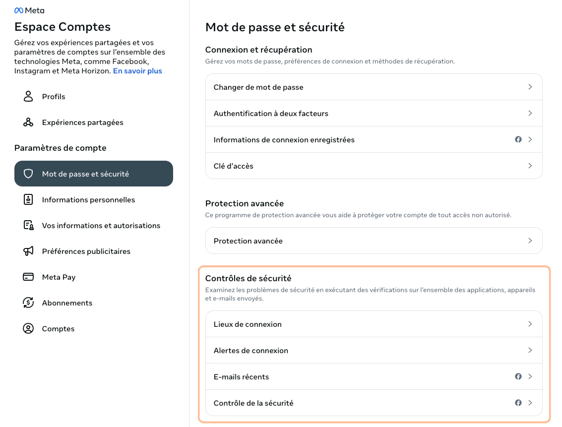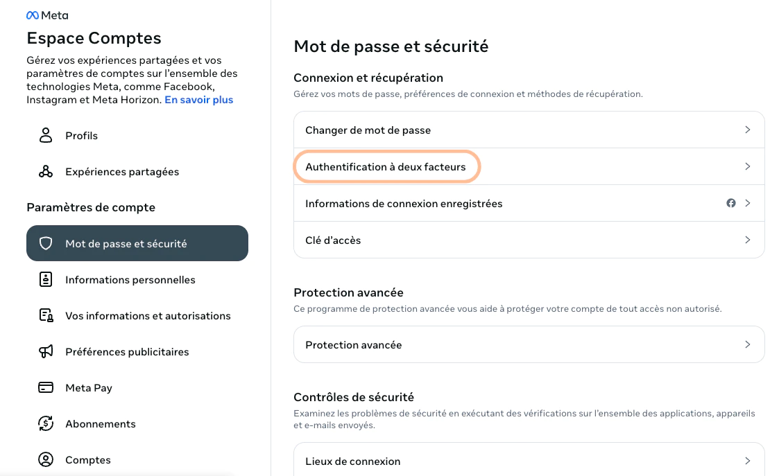 Lorsqu’elle est disponible, cette option permet de bénéficier d’un niveau de sécurité supplémentaire mis en place par Meta.