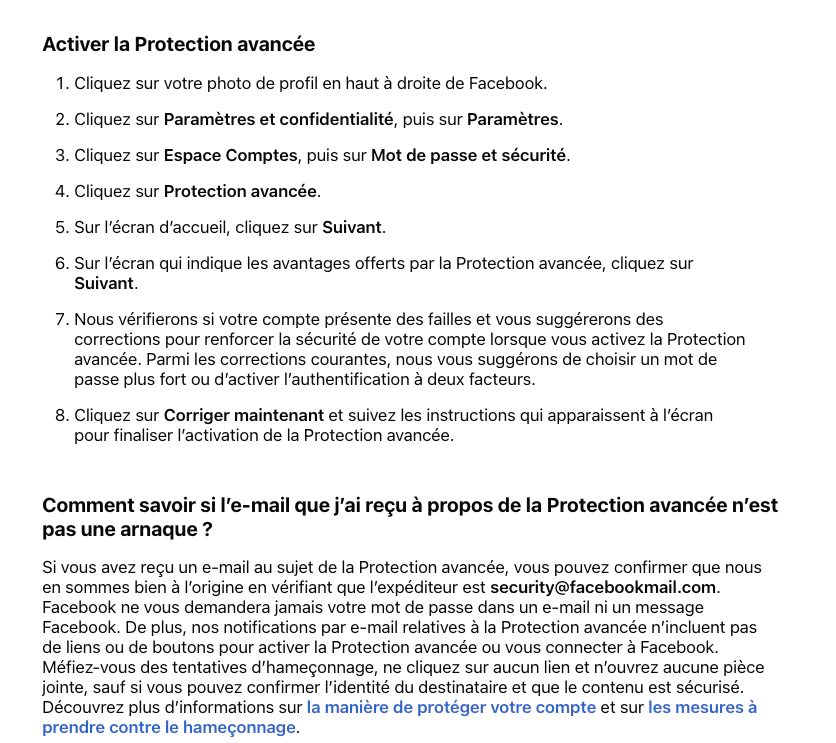 La Protection avancée ne remplace pas les bases de la sécurité Facebook.