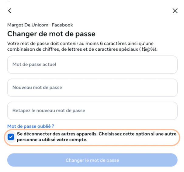 Lors d’un changement de mot de passe, pensez à vous déconnecter de tous les appareils afin de couper toute connexion active ou suspecte.